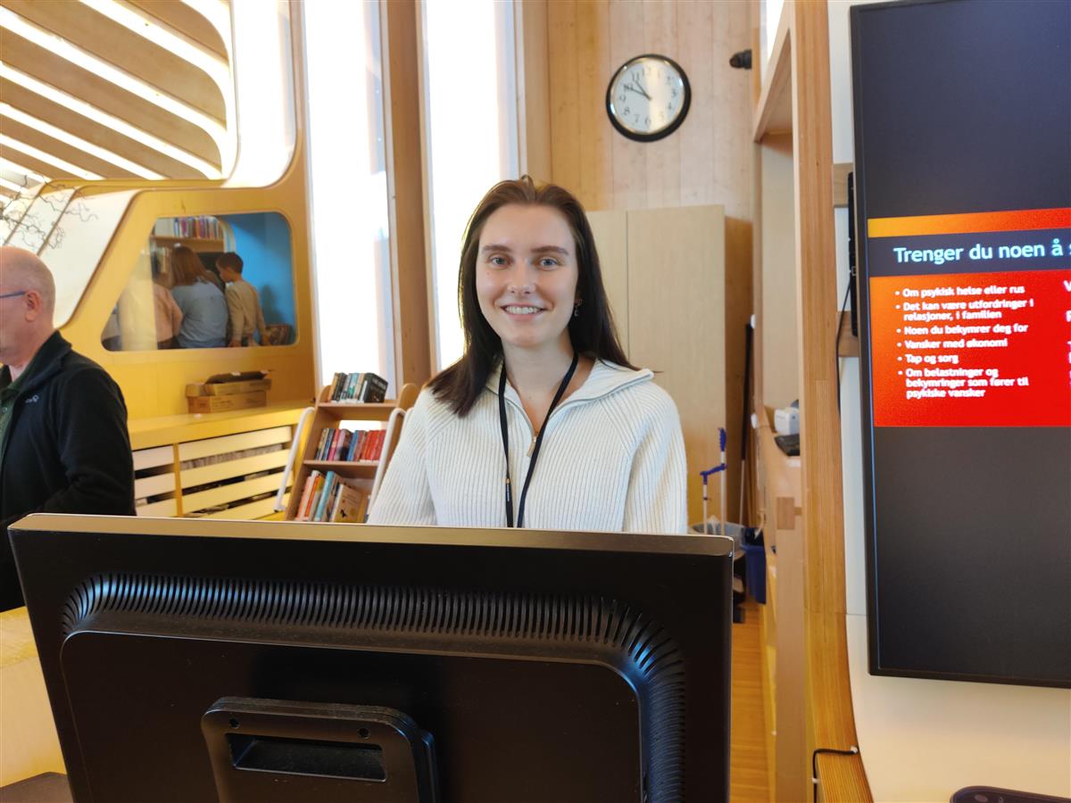 – Mange som kommer hit, er ikke så digitale. Sliter du digitalt, er vi der for å hjelpe. Vi hjelper med å fylle ut skjemaer eller viser hvordan du kan reservere bøker på biblioteket selv. Andre trenger hjelp fordi de ikke er så gode i norsk, eller de har praktiske spørsmål om alt fra boliger, renovasjon til brøyting, forklarer hun.
