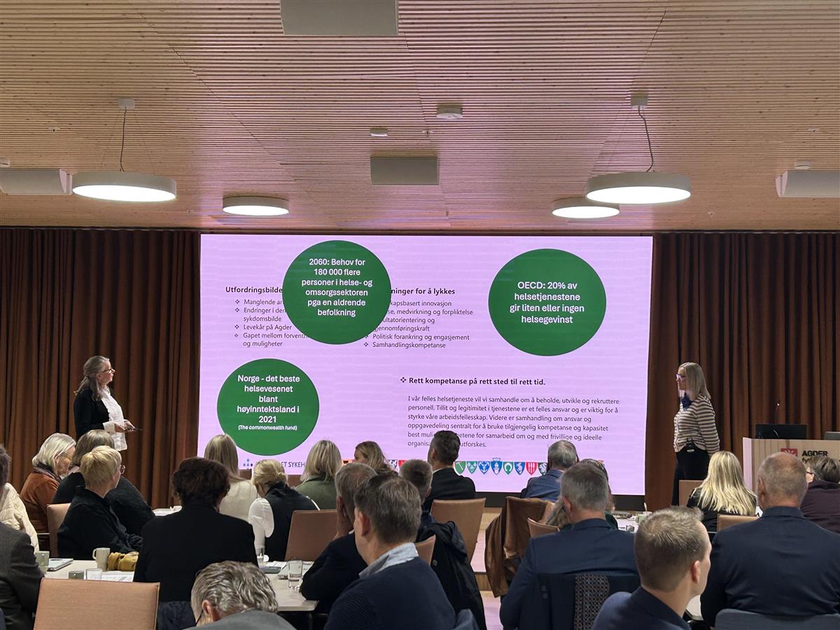 Helsefellesskapet består av Sørlandet sykehus, alle kommunene, statsforvalteren og fylkeskommunen og denne gang handlet det om hvordan vi skal sikre kompetansen på Agder når vi blir flere eldre og færre til å jobbe. Samhandling er et nøkkelord. Ressursene må finne hverandre - til beste for deg og fellesskapet.