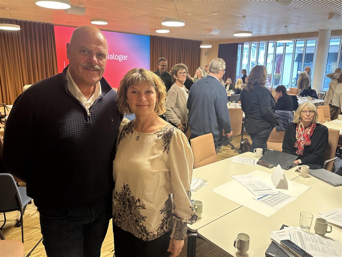 Ordfører Nils Olav Larsen og kommunalsjef Ragnhild Bendiksen deltok fra Vennesla.Snakke opp Agder