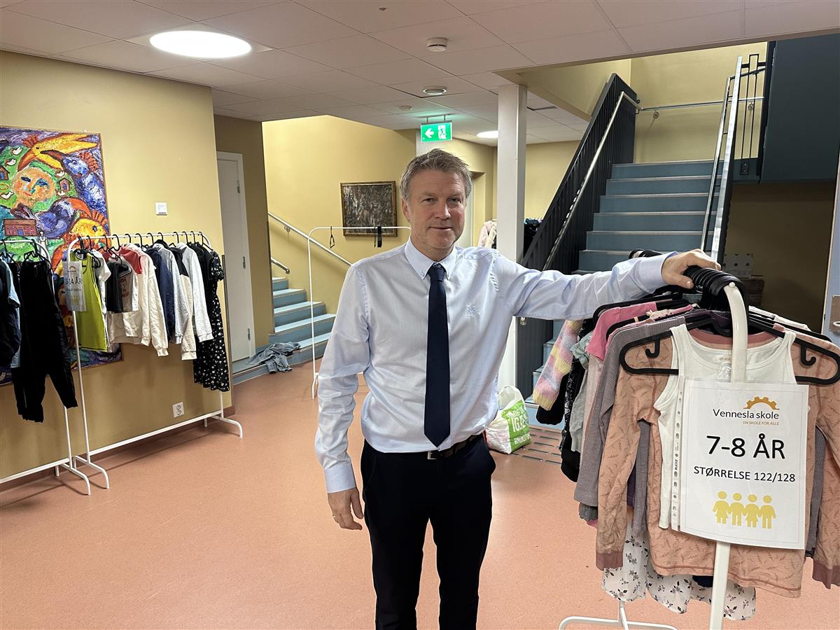 _ Skolen har allerede fått inn en del tøy fra elevene. Men i år har vi lyst til å invitere hele bygda. Vi ønsker at venndølene kommer med tøy de bruker eller trenger. Og så håper vi mange etterpå kommer og henter tøy som de kan bruke. Vi er her søndag kveld og tar i mot alle som kommer, oppfordrer rektor.