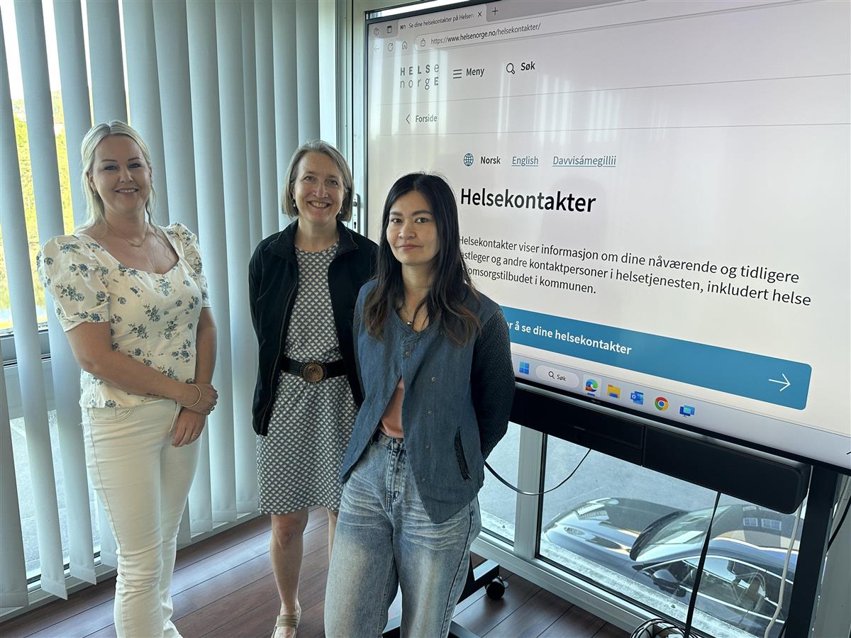 Det sier systemansvarlig Phasue Namfon, digitaliseringsrådgiver Katinka Sunde og leder for koordinerende og helsefremmende enhet, Bodil Bakken Domingos. (bildet).