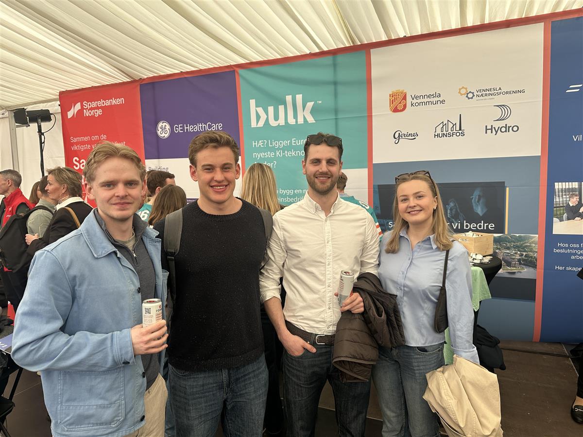 Vennesla kommune og Vennesla næringsforening hadde stand hvor vi snakket om bedriftene i Vennesla, delte ut små gaver med «verdens reneste aluminium» fra Hydro Vigeland brug og svarte på de spørsmål studentene hadde.